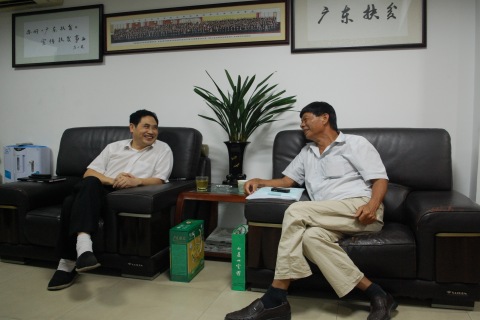 钟韶彬副理事长(左)接见连平企业家赖新民(右)