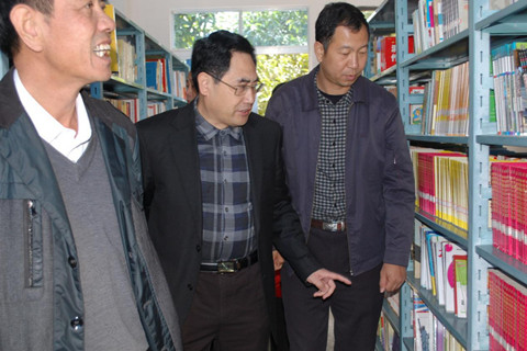 钟韶彬副理事长和县人大林应均副主任、县教育局钟永红局长一行参观图书馆