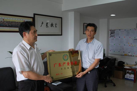 广东省政府特聘参事、协会副理事长兼秘书长钟韶彬向绿地美公司颁发“产业扶贫开发基地”牌匾