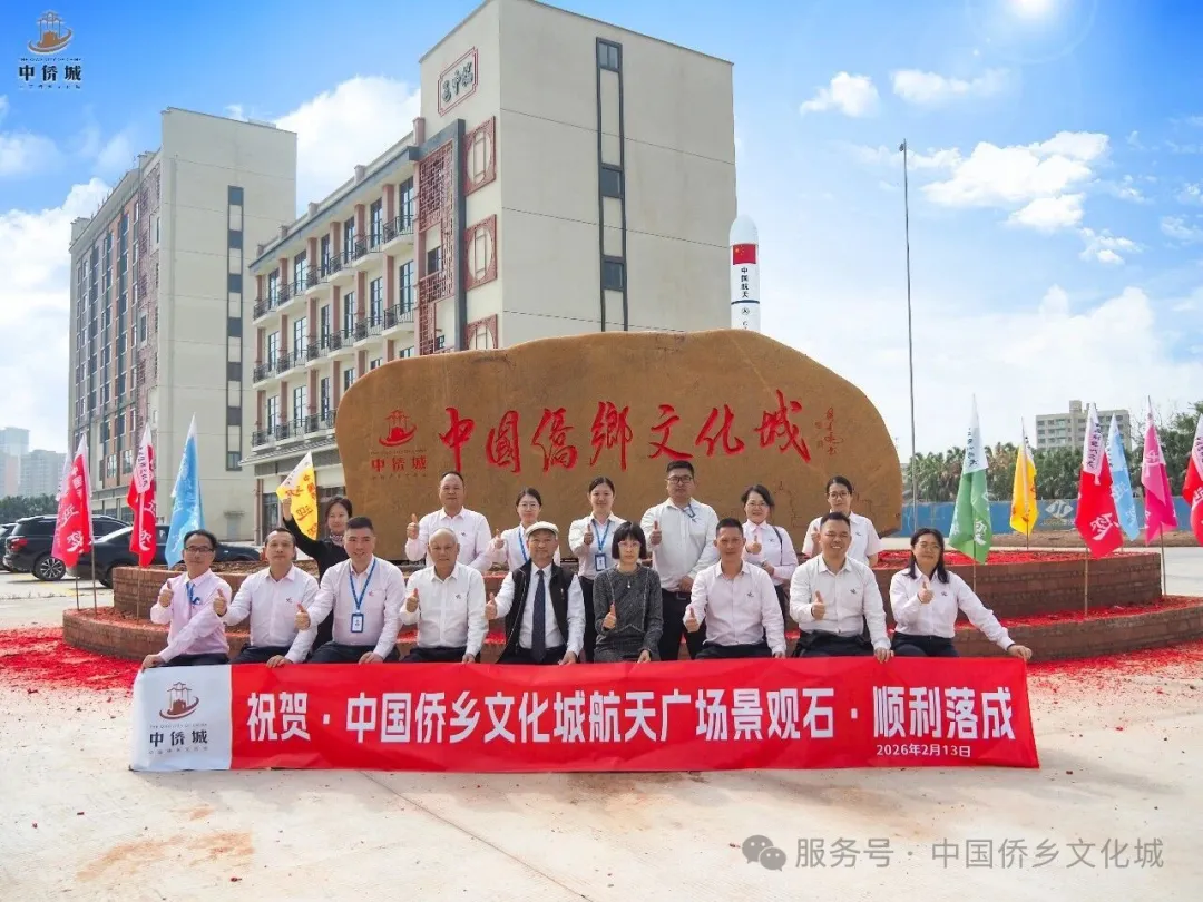 2026年2月13日上午,中国侨乡文化城航天广场景观石落成仪式圆满举行。董事长梁朝晃与员工代表齐聚现场,共同见证这一兼具侨乡文化底蕴与家国情怀的重要时刻,为中国侨乡文化城再添一道独具特色的文化新地标与精神风景线。