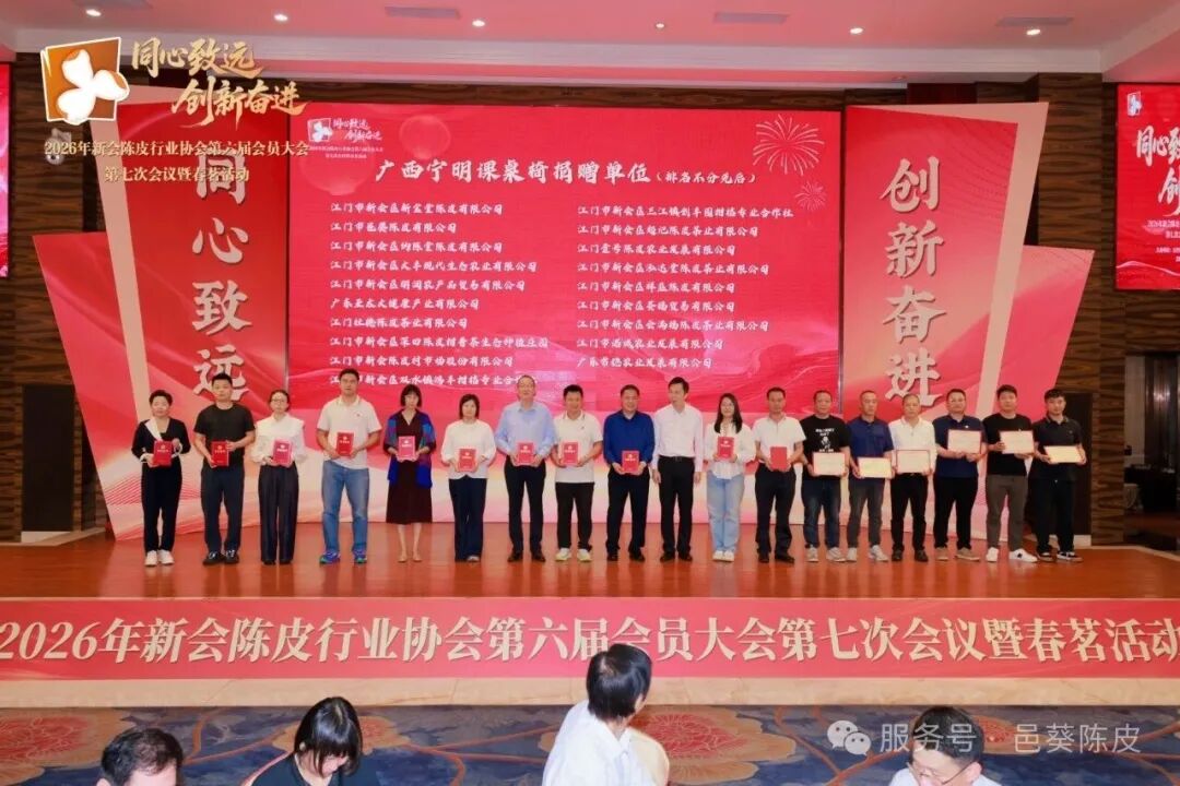 春风送暖,陈皮飘香。3月26日,以“同心致远 创新奋进” 为主题的新会陈皮行业协会第六届会员大会第七次会议暨2026 春茗活动,在新会龙泉度假酒店聚龙厅顺利举行。邑葵陈皮以协会副会长单位身份受邀莅临活动现场,实力斩获两项荣誉嘉奖。