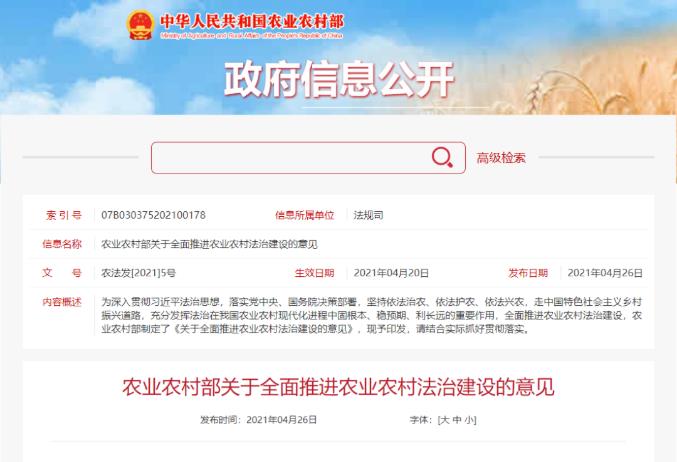 农业农村部关于全面推进农业农村法治建设的意见