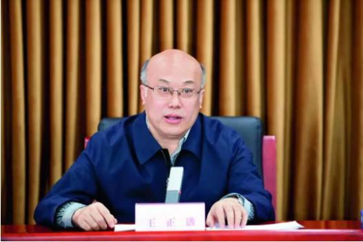 ▲2021年4月15日,王正谱在乡村振兴大讲堂第一期暨“大学习、大调研、大讨论”第一期论坛上开讲第一课,号召全局通过高质量的调查研究,助推乡村振兴工作高质量发展。侯春博/摄