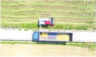 ▲2021年7月,广州市增城区丝苗米省级现代农业产业园内,收割机将收割后的稻谷传送到货车内,将运输到烘干场进行烘干。 谭家富 摄
