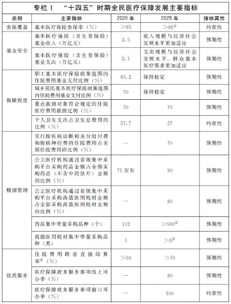 “十四五”全民医疗保障规划的通知