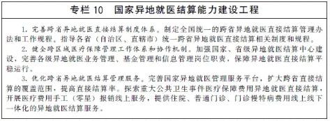 完善异地就医直接结算服务。加强国家异地就医结算能力建设,实现全国统一的异地就医备案,扩大异地就医直接结算范围,逐步实现住院、门诊费用线上线下一体化的异地就医结算服务。