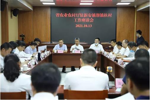 ▲省农业农村厅驻新安镇帮镇扶村工作座谈会。