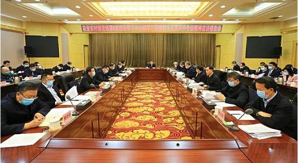 会议认为,十九届六中全会围绕党的百年奋斗重大成就和历史经验这个主题主线,讲清了中国共产党过去为什么能够成功、未来怎样才能继续成功这个根本问题,具有极强的历史穿透力、思想引领力、政治动员力、时代感召力。要深入学习领会十九届六中全会的核心要义和实践要求,深刻理解“两个确立”对新时代党和国家事业发展、对推进中华民族伟大复兴历史进程的决定性意义,始终忠诚核心、拥戴核心、维护核心、捍卫核心;深刻理解“三次飞跃”的理论创新,全面系统学习领会习近平新时代中国特色社会主义思想,进一步学深悟透用好用活习近平总书记关于三农工作的重要论述;深刻理解“四个时期”的重大成就,充分认识三农在“两个大局”中的战略地位和历史使命,准确把握新时代三农历史方位;深刻理解“十个坚持”的宝贵经验,作为全面推进乡村振兴、加快农业农村现代化的根本准则,以史为鉴把稳三农前进方向。