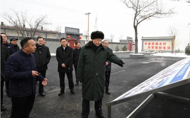 ▲1月26日至27日,中共中央总书记、国家主席、中央军委主席习近平来到山西,看望慰问基层干部群众。这是26日下午,习近平冒雪在临汾市霍州市师庄乡冯南垣村考察。图片来源:新华网