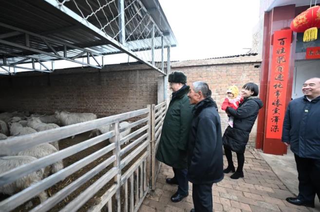 ▲1月26日至27日,中共中央总书记、国家主席、中央军委主席习近平来到山西,看望慰问基层干部群众。这是26日下午,习近平在临汾市汾西县僧念镇段村蔡文明家察看羊圈。图片来源:新华网