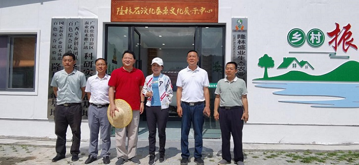 ▲图为刘吉平教授(左三)与广西隆林各族自治县政协副主席陈晓慧(右三)等人合照