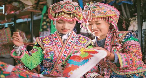 巩固拓展脱贫攻坚成果是全面推进乡村振兴的底线任务。近年来,贵州省黔西市红林彝族苗族乡依托当地丰富的刺绣、蜡染等非物质文化资源,巧用“指尖经济”助力脱贫、推进乡村振兴。图为2023年1月6日,苗族妇女在红林彝族苗族乡渔塘村“刺绣作坊”里刺绣。 人民图片 周训超/摄