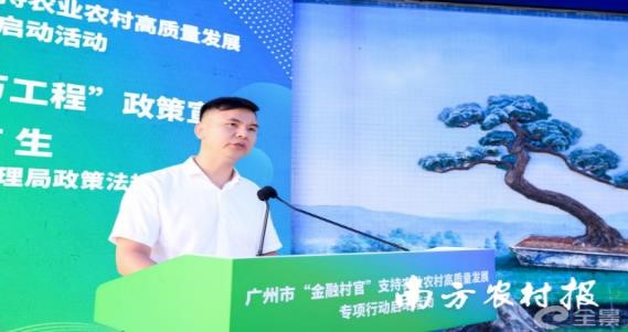广州市地方金融监督管理局政策法规处处长李有生进行了关于金融支持“百千万工程”政策宣讲。他表示,为进一步加强金融支持乡村振兴、助力实施“百千万工程”,广州市地方金融监管局制定金融支持“百县千镇万村高质量发展工程”有关工作方案。下一步,将结合“金融村官”启动工作,不断完善政策体系和推动落实,引导金融机构为乡村振兴和“百千万工程”提供更有力的金融支持。