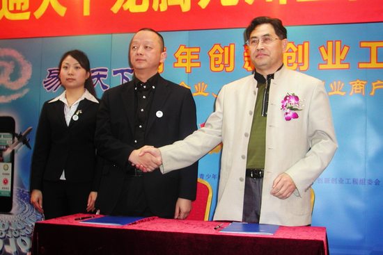 仪式上,省扶贫开发协会秘书长钟韶彬与易通天下公司董事长范真溯现场签订广东青年创业扶贫工程协作书。按照协作书规定,公司先期捐赠“广东青年创业扶贫种子基金”50万元启动该项目,以后将项目收益和企业利润所得按一定比例捐献注入“青年创业扶贫基金”,捐赠一批易购宝手机支持贫困青年投资创业。