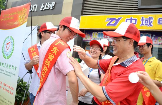 本网讯  “人人都是微天使,志愿微扶贫,粤爱粤幸福!”“扶贫济困,我参与,我奉献,我快乐” 、“一份捐赠,一份心意,微爱微力量,汇爱大幸福”……8月4日,广州白云马务商业中心,志愿扶贫旗帜飞扬,爱潮涌动。由广东省扶贫开发协会牵头组织的广东扶贫志愿团“志愿微扶贫”十站万人签名活动首站正式启动。