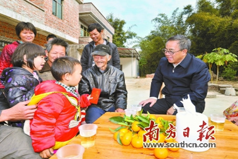 29日,胡春华到惠州市龙门县龙华镇花竹村慰问困难群众,了解村民脱贫奔康情况。