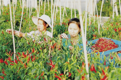 图为日前江西峡江县分界村的贫困户在采摘辣椒。今年以来,该县派出千名党员干部组成100个“连心”小分队,实施以绿色蔬菜、精品果业为主的产业扶贫,助力群众脱贫解困。陈福平摄