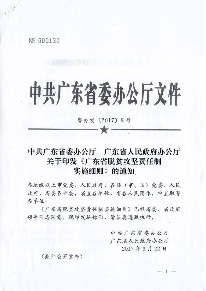 关于印发《广东省脱贫攻坚责任制实施细则》的通知(粤办发〔2017〕8号)