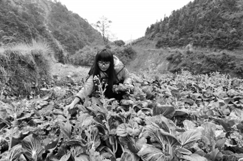 上图为盘乐燕在家里帮忙摘菜