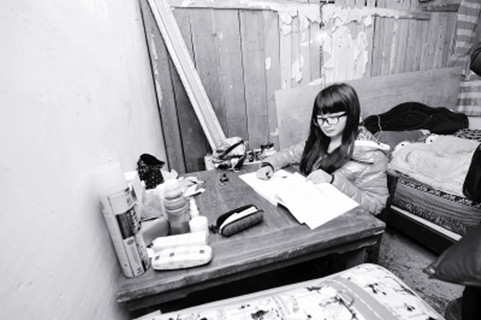 上图为盘乐燕在家中做作业的情景。谷立辉 摄