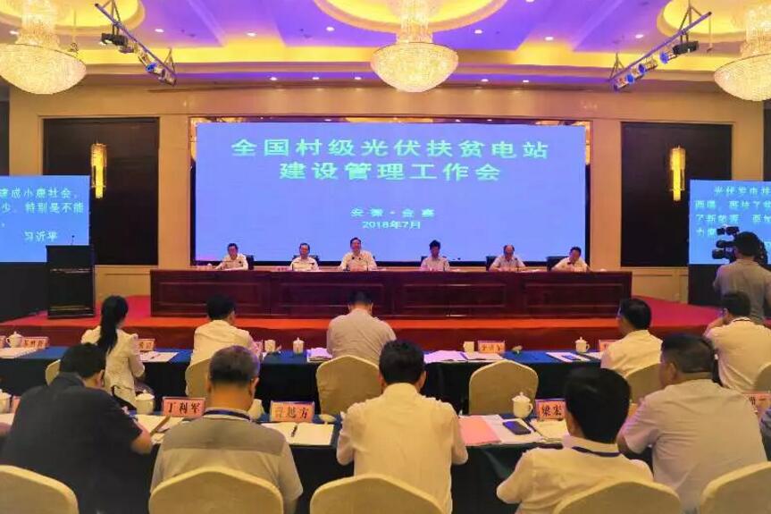 为进一步提升全国村级光伏电站建设管理工作水平,将村级光伏扶贫电站建设工作落实落细,管严管好,7月31日至8月1日,国务院扶贫办、国家能源局在安徽金寨共同召开全国村级光伏扶贫电站建设管理工作会。国家林业和草原局、国家电网公司、南方电网公司、国家开发银行、中国农业发展银行、中国扶贫发展中心、各省(区、市)扶贫办、能源局相关负责同志和部分光伏企业代表参加会议。