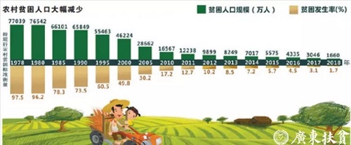 以现行标准衡量,1978年末我国农村贫困发生率高达97.5%,农村贫困人口7.7亿人,而截至2018年底,只剩下1660万人未脱贫。2013—2018年6年来,农村累计减贫8239万人,连续6年平均每年减贫1300多万人。“中国贫困人口的减少规模和速度是人类历史上绝无仅有的。”中国人民大学中国扶贫研究院院长汪三贵说。