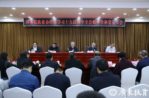 党组会后,刘永富同志主持召开国务院扶贫办全体党员大会,传达党的十九届四中全会精神,并就党组会议研究的初步贯彻落实措施进行安排部署。