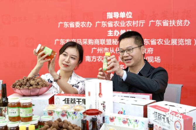 ▲清远市人民政府副市长雷玉春(左)与南方农村报主播杨娉婧一起为清远农产品直播带货。