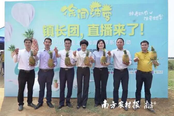 ▲徐闻县全国首创镇长直播团,七大镇长为菠萝带货。