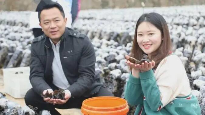 ▲蕉岭县广福镇镇长谢淳晖为当地产业园的富硒黑木耳和茶树菇代言直播。资料图片