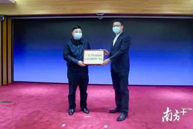 ▲2月7日,广东省农业农村厅厅长顾幸伟(左一)为广东省农业农村短视频制作推广中心授牌。资料图片