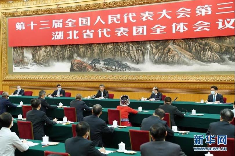 ▲5月24日,中共中央总书记、国家主席、中央军委主席习近平参加十三届全国人大三次会议湖北代表团的审议。 新华社记者 黄敬文 摄