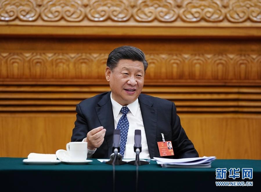 ▲5月24日,中共中央总书记、国家主席、中央军委主席习近平参加十三届全国人大三次会议湖北代表团的审议。 新华社记者 李学仁 摄