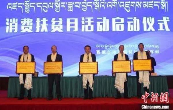 ▲图为活动向向西藏自治区级消费扶贫示范单位颁发牌匾(图片来源:中国新闻网)