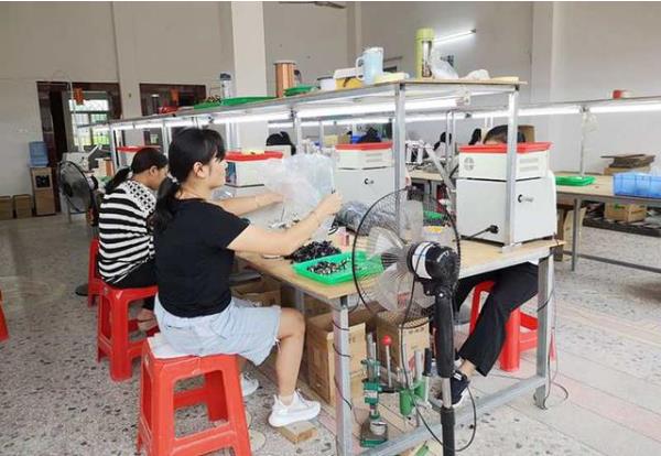 在广东省梅州市五华县湖中村扶贫车间,数十位村民在生产线上为电子配件进行组装、焊接。“这里的工人以女性为主,因为要留守在家里照顾孩子、老人,无法外出务工。在村里开办扶贫车间,可以让她们在家门口实现就业。”扶贫车间负责人彭李生表示。