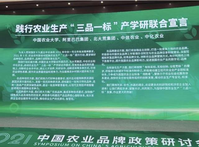 此外,中国农业大学联合阿里巴巴集团、北大荒集团、中信农业、中化农业等单位发布《践行农业生产“三品一标”产学研联合宣言》。中信农业侧重品种培优,中化农业侧重品质提升和标准化生产,阿里巴巴侧重品牌建设,发挥各自优势并形成合力。