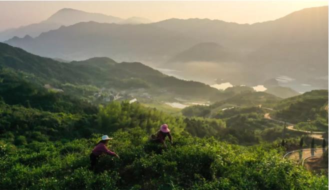 ▲湖南平江县以工代赈试点项目带动群众在茶园采摘春茶