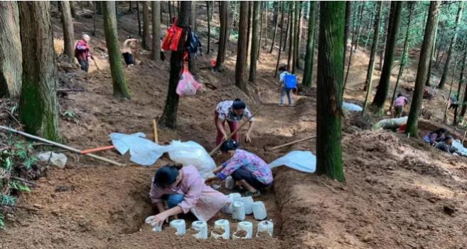 ▲贵州兴仁市群众在以工代赈试点项目支持林下菌产业基地务工