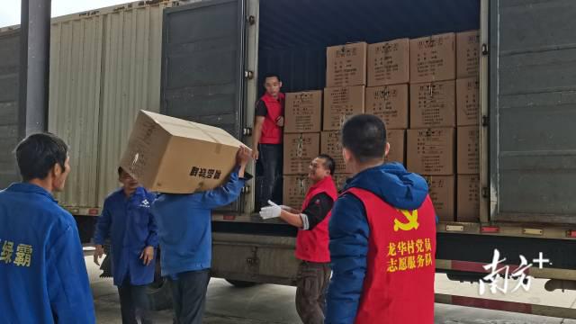 11月30日上午,强冷空气下的清远英德市气温骤降,在横石塘镇龙华村委会门前的农产品收购基地,穿着红色志愿服的村委会干部们正热火朝天地忙碌着,额头上渗出细密的汗珠,他们将一包包丝苗米、一袋袋麻竹笋、一盒盒英德红茶陆续装进箱子,打包好送上运输车载往广州。