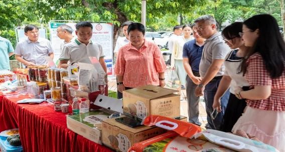 化橘红、番石榴、贵妃黄皮、连樟1号红茶、紫土香米、鹿茸菇、杏花鸡、沉香、淮山薯、廉心米……展销活动现场共设置8个展位,广东省委办公厅、省委组织部、省财政厅、省水利厅、省农业农村厅、省信访局、省科学院、国家自然资源督察广州局等省直、中直牵头组团单位和成员单位驻镇帮镇扶村工作队携100余款帮扶地区优质农产品参加展销。各具特色的“土特产”吸引省农业农村厅机关干部职工纷纷买单,积极参与消费帮扶,助力乡村振兴。