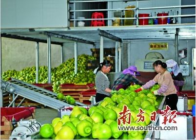 ▲柚果加工车间内,村民正忙着对柚果进行分拣。何森垚 摄