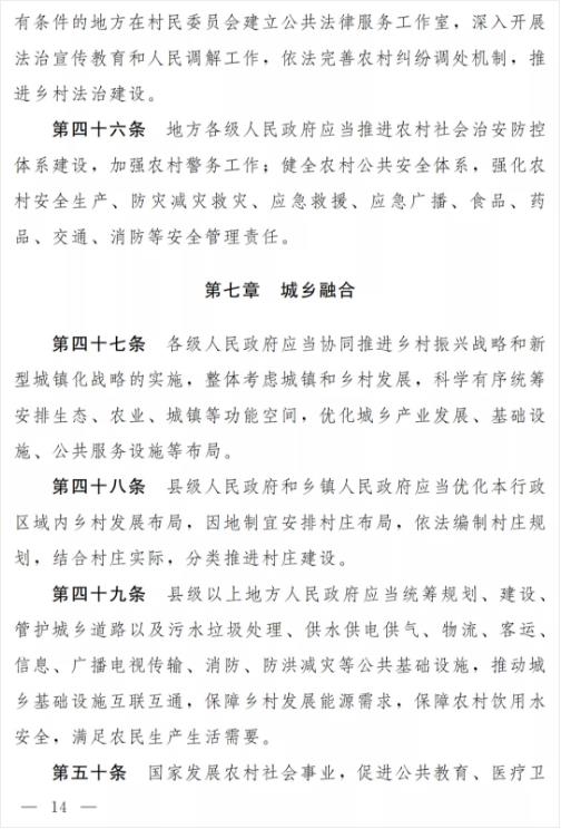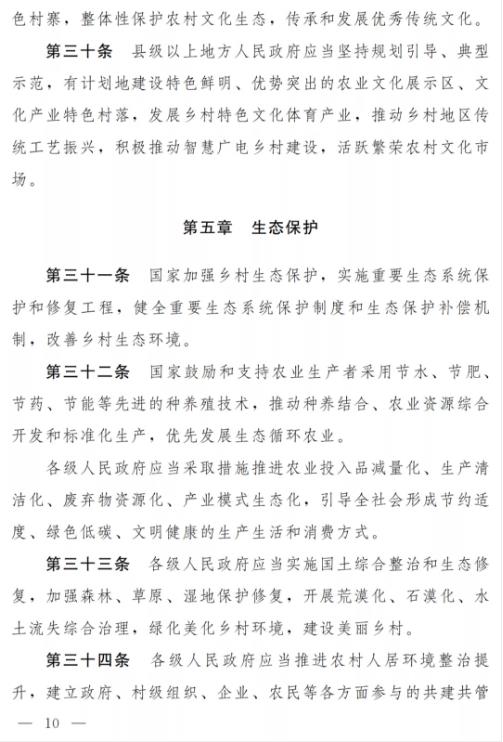 近日,《乡村振兴促进法(草案)》(以下简称《草案》)正式公布并公开征求意见。《草案》分为10章,共71条,其中多项涉及自然资源管理。《草案》强调,乡村振兴应当坚持人与自然和谐共生,牢固树立和践行生态文明思想,统筹山水林田湖草系统治理,促进绿色发展;坚持规划先行、注重特色、分类实施、有序推进。