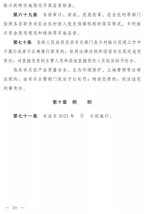 《中华人民共和国乡村振兴促进法(草案二次审议稿)》在中国人大网公布,社会公众可以直接登录中国人大网(www.npc.gov.cn)提出意见,征求意见截止日期:2021年1月29日。