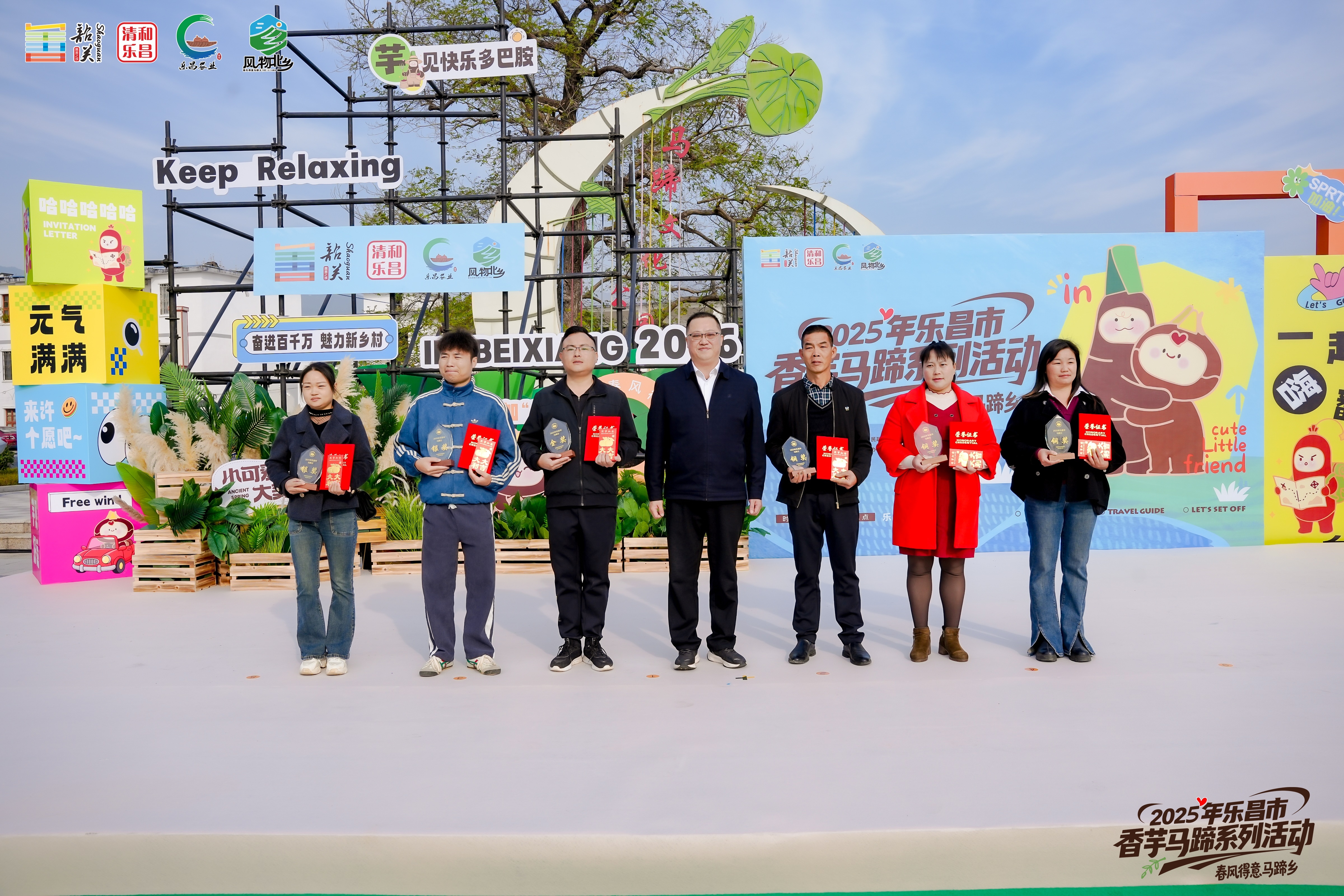 当天的活动在欢快的舞蹈中拉开序幕,伴随着北乡特产IP马小脆、芋小北、腊风仔、北乡伯“组团出道”,现场观众的掌声与欢呼声此起彼伏,热闹的气氛迅速“点燃”活动现场。为精准契合本次活动的年轻化潮流定位,今年的北乡特产IP全面焕新升级,打造为更具陪伴感、强社交的暖心情绪特产IP。其中,马小脆以北乡马蹄为原型,灵动活泼的性格彰显了地方活力与魅力;芋大北以饱满的炮弹香芋为原型,憨厚可爱,是情绪转化导师;腊风仔承传统腊味底蕴,裹挟着浓郁烟火风味,是妥妥的松弛感达人;北乡伯则以勤劳朴实的北乡农户为原型,头戴草帽、面带笑容,诠释着乡土智慧传承人的勤劳与坚守。