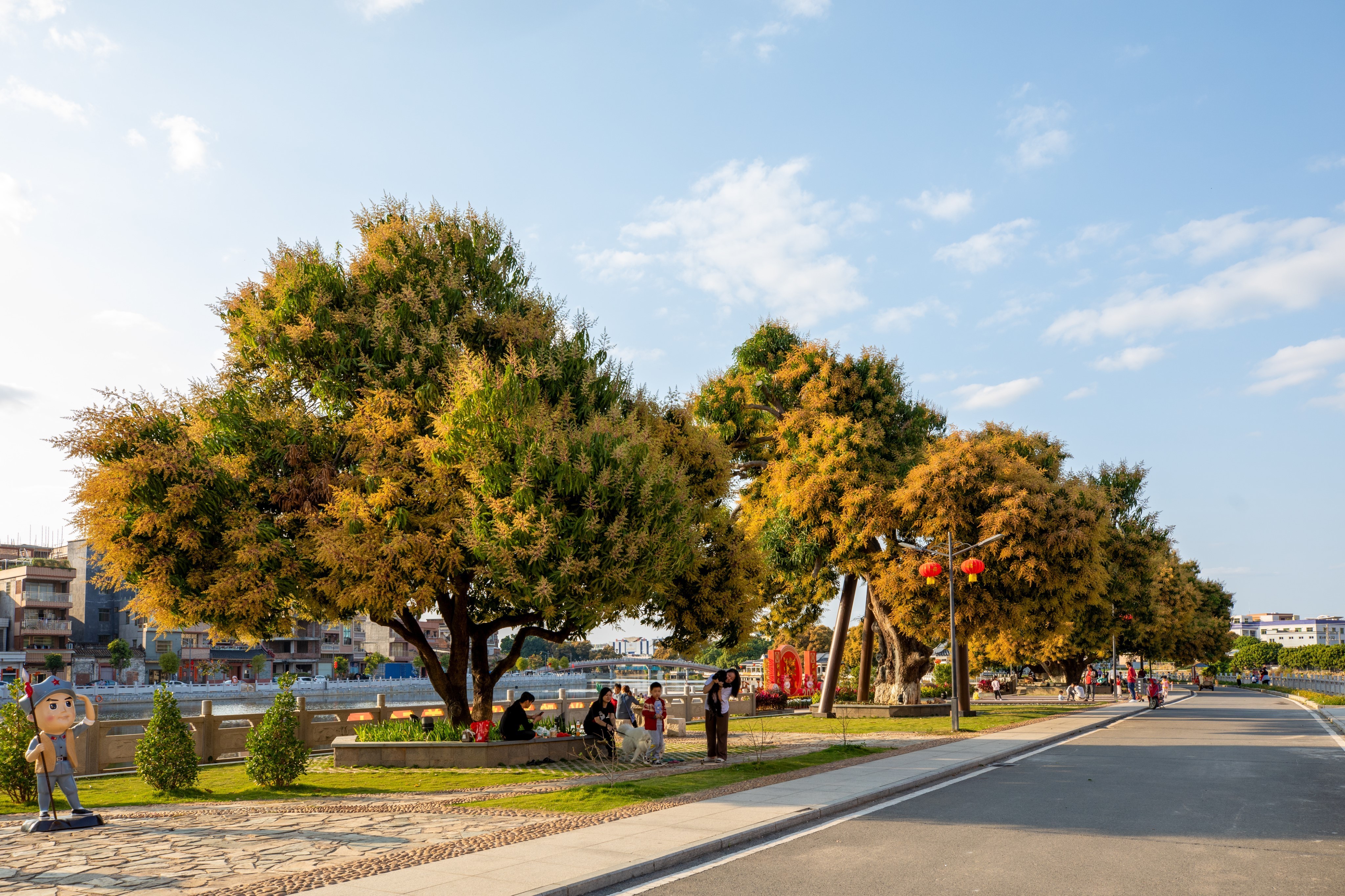 在守护“老绿”的同时,钟兆华也不断为社区增添“新绿”。在“绿美莞邑 党员先行”活动中,他挥锹培土的身影映在湖面;退役军人和乡贤共同种下的三角梅沿湖绽放,炮仗花攀上围墙,在龙船竞渡的水面旁铺展开一片花瀑。推开窗,村民便能看见古树与新花相映成景的生机画卷。