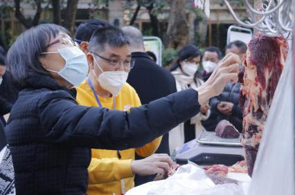 桥南街社区居民曹女士在现场购置了雪花牛肉和牛腱子。她告诉记者,作为西安人落户广州的她,三十年来只爱牛羊肉,一直对食材很挑剔,“这里卖的牛肉,很干很实,没有水分,肉香浓郁!”