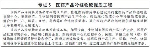 提升医药产品冷链物流应急保障水平。研究将医药产品冷链物流纳入国家应急物资保障平台,整合行业医药冷库、车辆、标准化载器具等资源,健全应急联动服务及统一调度机制,提高医药产品冷链应急保障能力。完善全国统一的医药产品冷链物流特别管理机制,保障紧急状态下疫苗及其他医药产品冷链运输畅通和物流过程质量安全。
