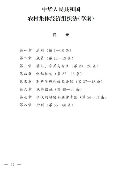 十三届全国人大常委会第三十八次会议对《中华人民共和国农村集体经济组织法(草案)》进行了审议。现将《中华人民共和国农村集体经济组织法(草案)》予以公布,社会公众可以直接登录中国人大网(www.npc.gov.cn)或国家法律法规数据库(flk.npc.gov.cn)提出意见,也可以将意见寄送全国人大常委会法制工作委员会(北京市西城区前门西大街1号,邮编:100805。信封上请注明农村集体经济组织法草案征求意见)。征求意见期限为30日。
