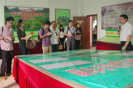 采访团在连南县扶贫开发研究孵化中心采访