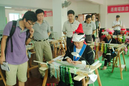 采访团在连南瑶绣坊采访